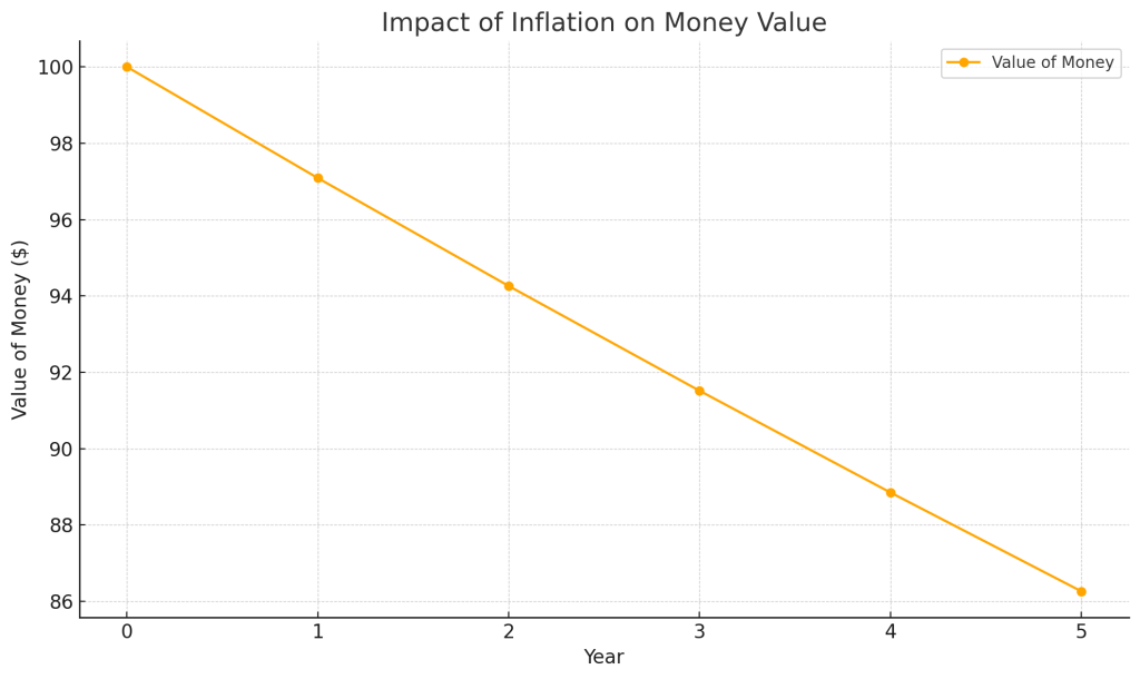 The impact of inflation on the time value of money is one of its most significant factors. As the price level rises, the purchasing power of money continuously diminishes. This means that the same amount of money will buy fewer goods and services in the future than it does today. Of course there might also be deflation where the purchasing power increases, but that is very rare and extremely bad situation.