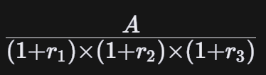 Where A is again the amount of money and different r-letters represent the inflation rates for each year. You start by multiplying the ratios below 1.04 * 1.05 * 1.02 = 1.11384. Then divide the amount of money with this rate $10 000 / 1.11384 = $8 977.95. The purchasing power has lowered $1 022.05.